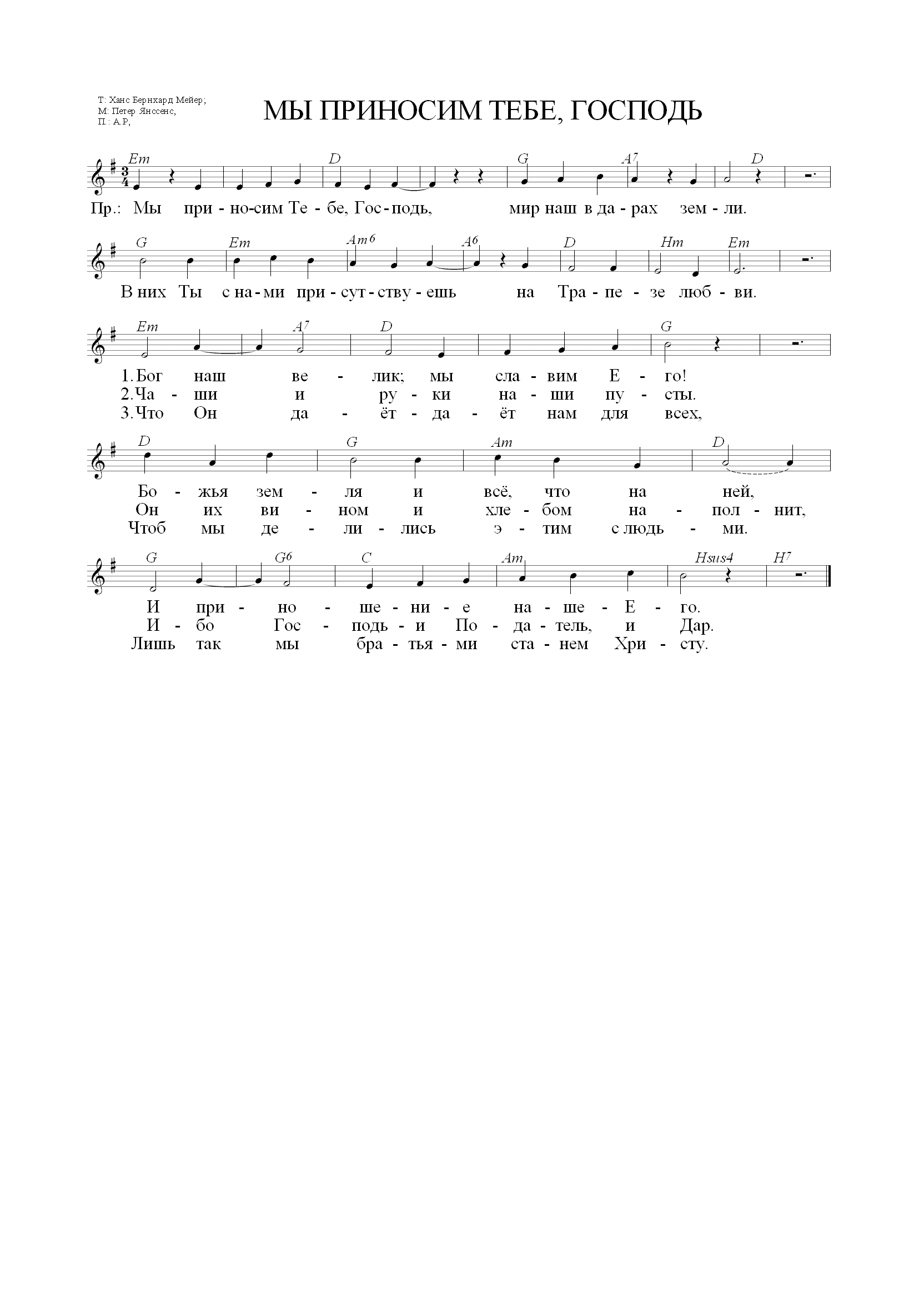 Здесь найдёте песни которые мы включили в состав песенника. Для просмотра файла в формате « .сар» (capella), используется программа Capella-Reader (2 мегабайта - к сожалению, пока только по-немецки, но работать с ней очень просто), которую можно бесплатно скачать здесь.